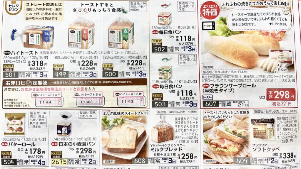 実際におうちコープを利用している筆者がおまかせ定期便のおすすめ5選を紹介していこうと思います!実際の商品の写真やカタログなども掲載しますので是非参考にしてください!(※カタログは2025年10月5週のものになります。)